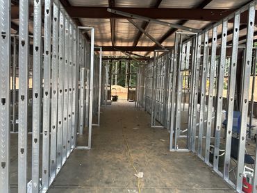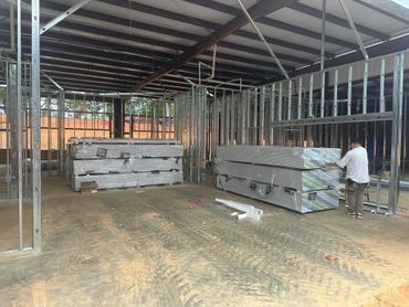 We met with Toby Latimer on 7/15 and we are getting our water and power on time. These were the only two items outside of Latimer Construction's control when we met last week and chatted. We are thrilled with this news. We were on site early on 7/16 and spoke to the electrician who said Ga Power should be on site sometime today. He said his whole part will be on time for the inspection at the start of next week! Plumbing pipes are in and we have outdoor spickets in place. The guys are working by the street on the storm water detention system and this will be complete on time. Sheet rock is on its way and it will be going up on one side later this week and both sides will be done after the inspection of the inside of the walls at the start of next week. The stone workers are doing an amazing job and they are fast! We love the color. The siding guys are working on completing all of that and the roof is up. The retaining wall for the parking lot is being prepped today. We met with several installers for our camera, security, and door access system on 7/15 and this will be completed in the next week or so. We have SO many new desks and tables to assemble but Toby is still planning on us being able to move in on the 29th-31st so we will have time to get everything done!
